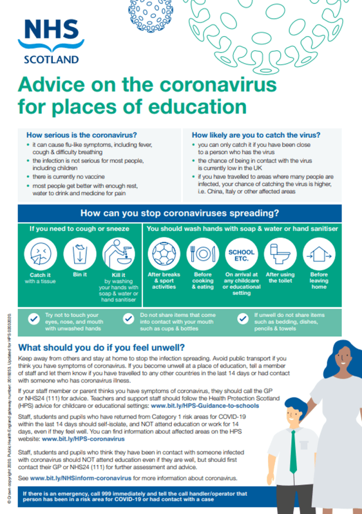 Please see the poster below that was issued with advice for school settings today around Coronavirus. We will be following this in school with regular hand washing for the children.